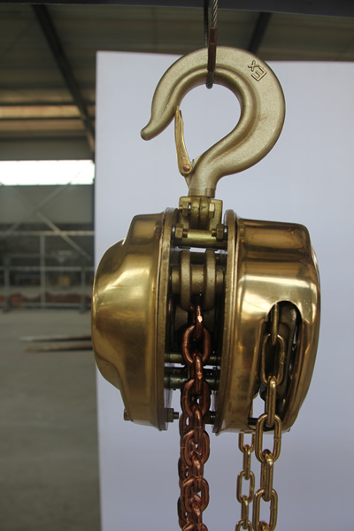 1噸防爆手拉葫蘆采用鋁青銅和鈹青銅材質(zhì)鍛造,設(shè)計結(jié)構(gòu)合理,使用安全性高,在使用過程中,不會產(chǎn)生火花,因此被廣泛應(yīng)用于石油、石化、油站、油庫、采氣、化工、軍工、電力、礦山、電子、鐵路、等潛在火患和爆炸的危險環(huán)境中。